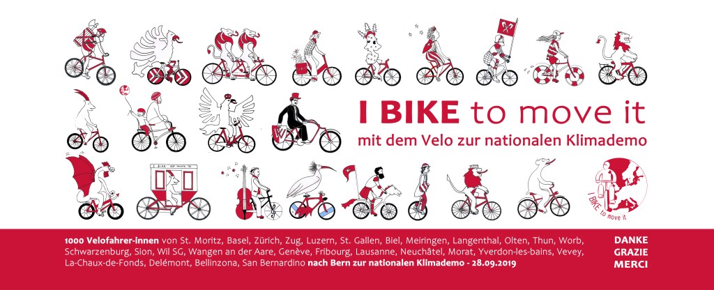 – à la manif nationale pour le climat à vélo – mit dem Velo zur nationalen Klimademo –